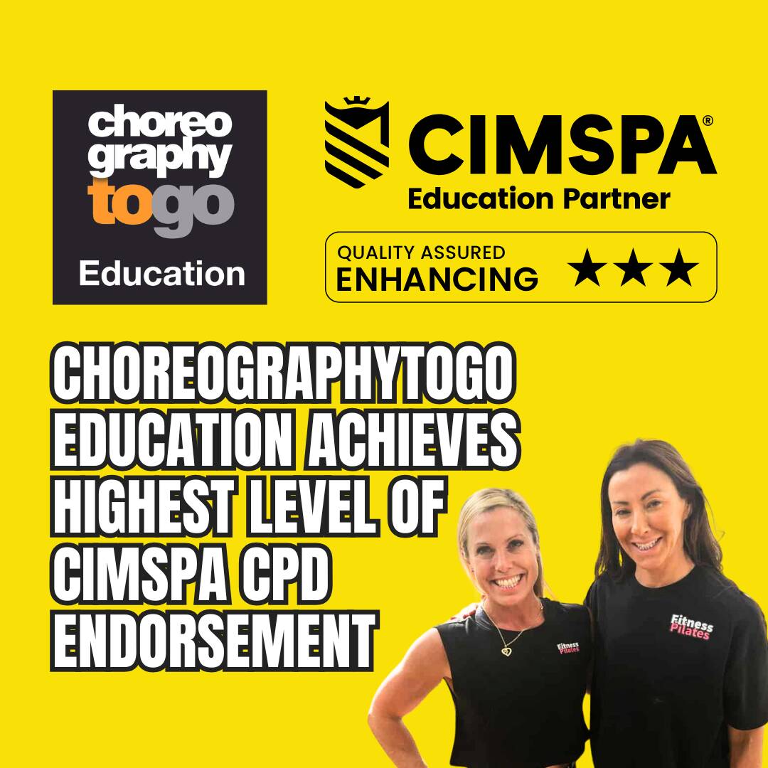 Receiving the highest level of CPD endorsement confirms that Choreographytogo Education’s courses, systems and delivery meet CIMSPA’s rigorous quality standards and provide meaningful professional development for fitness and Pilates professionals.